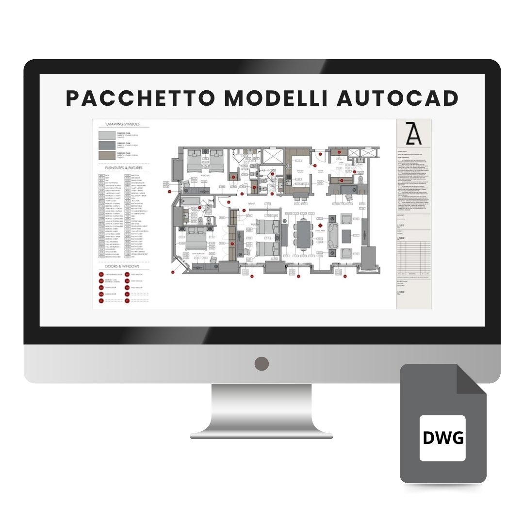 Progettato specificamente per i tuoi progetti di interior design. Utilizza questo disegno di lavoro in formato AutoCAD come guida per migliorare le tue convenzioni di disegno e per replicare lo stile visivo e grafico come mostrato:
